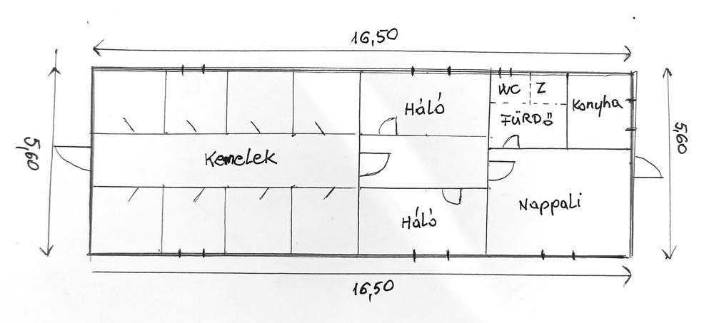 A területen áll egy közepes állapotú, könnyűszerkezetes, 92 m²-es gazdasági épület, melyből 41 m² lakrész, 51 m² kennelek. Nappali, 2 háló, zuhanyzós fürdőszoba, WC, konyha. Részben külső szigeteléssel, energetikai besorolása DD. Fűtés, melegvíz kombi cirkóval. Szerelt kémény is van az épületen.